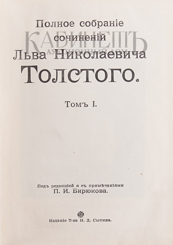 Полное собрание сочинений Льва Николаевича Толстого. Под редакцией и с примечаниями П.И. Бирюкова. В 20-ти томах. [М.], издание Т-ва И.Д. Сытина, [1913].