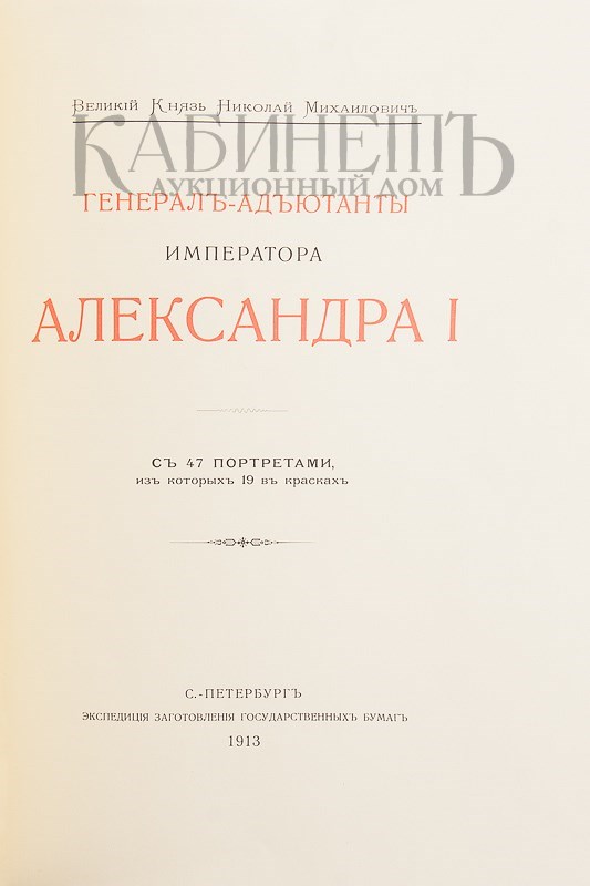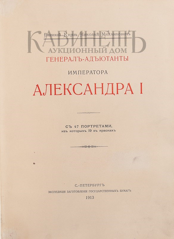 Великий Князь Николай Михайлович. Генерал- адъютанты императора Александра I. С 47 портретами, из которых 19 в красках. СПб., Экспедиция Заготовления Государственных бумаг, 1913.
