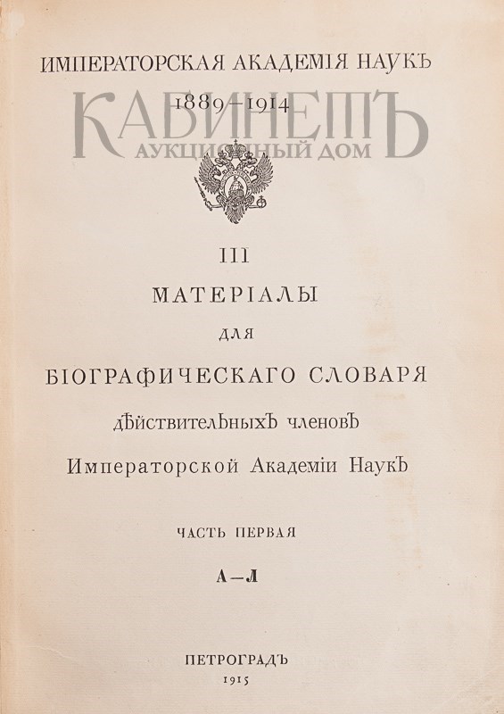 1) Императорская Академия наук 1889–1914. Материалы для биографического словаря действительных членов Императорской Академии наук. В 2-х томах, Пг., типография Императорской Академии Наук, 1915.