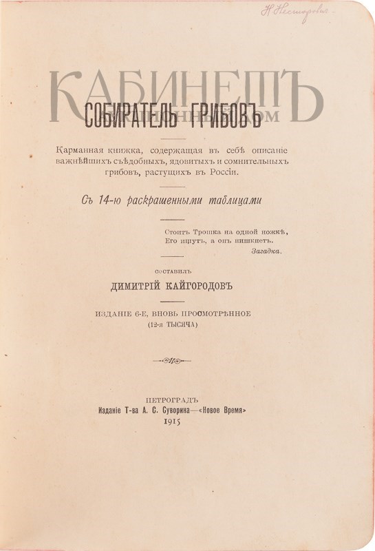 Архив аукциона №17(61) Лот 330 Кайгородов Д. Собиратель грибов. Карманная книжка,
