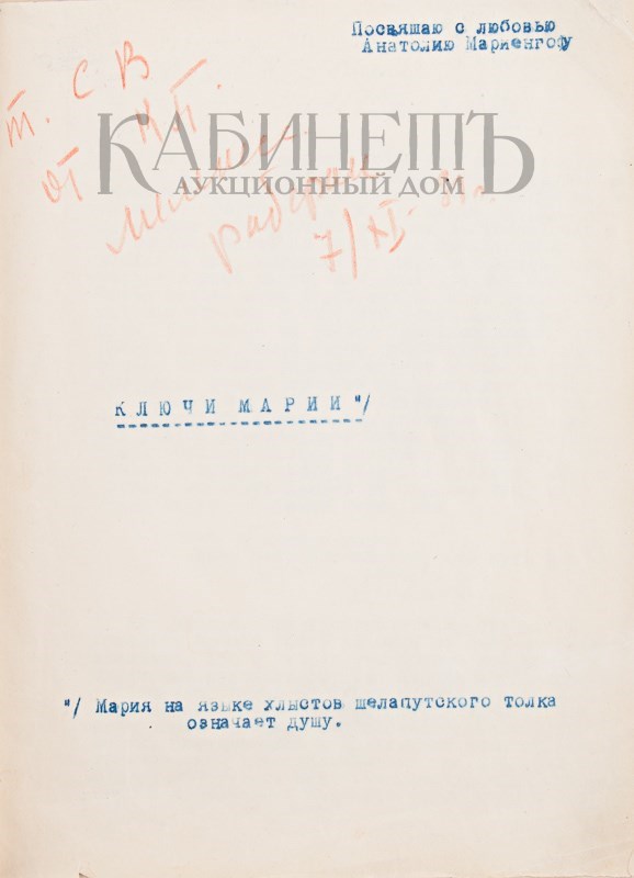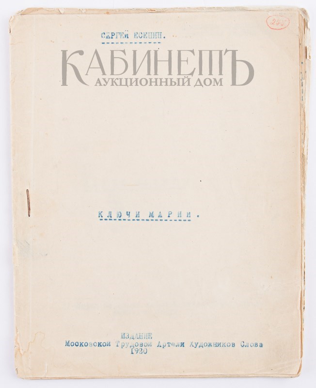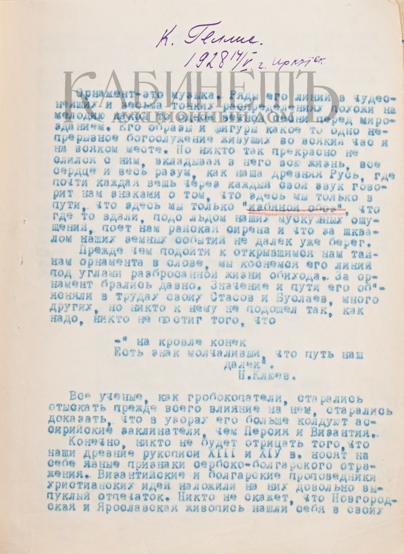 Экземпляр воспроизведен на пишущей машинке. В конце стоит дата: Иркутск, 13 / V 1928. На авантитуле надпись цветным карандашом: 2Т. С В от КП … Рабфак 7/XI – 21 г. незначительные надрывы, пятна от воды.