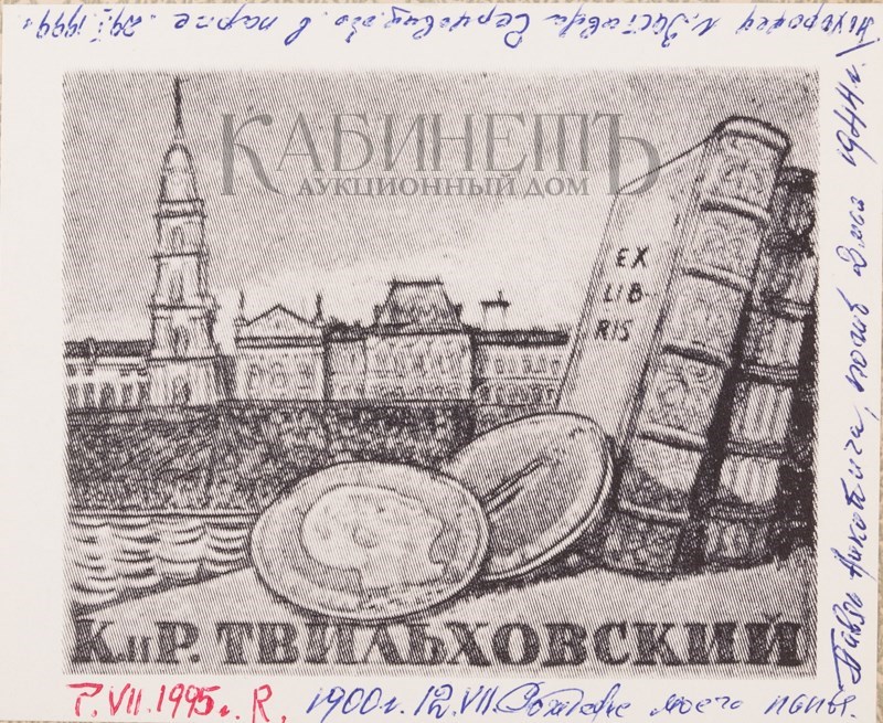 Экземпляр издательском художественном коленкоровом переплете с «потухшим» золотым тиснением на корешке и верхней крыш- ке. Издательские обложки сохранены в переплете. Потертости, временные пятна на страницах. На форзаце экслибрис рыбинского коллекционера Р.П. Твильховского.