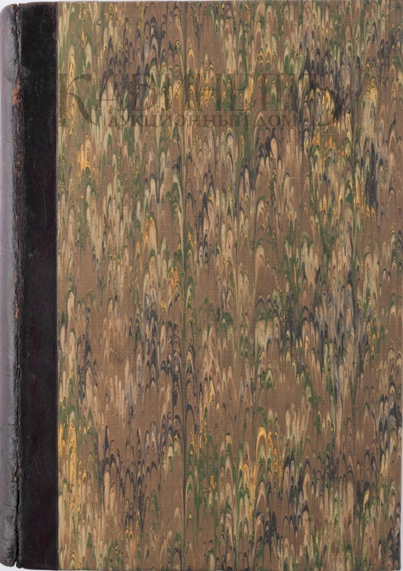 Экземпляр в составном полукожаном переплете, старинный корешок, современные крышки, разлом по корешку, реставрация корешка.