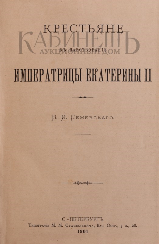Семевский В.И. Крестьяне в царствование Императрицы Екатерины II. СПб., Типография М.М. Стасюлевича, 1901.