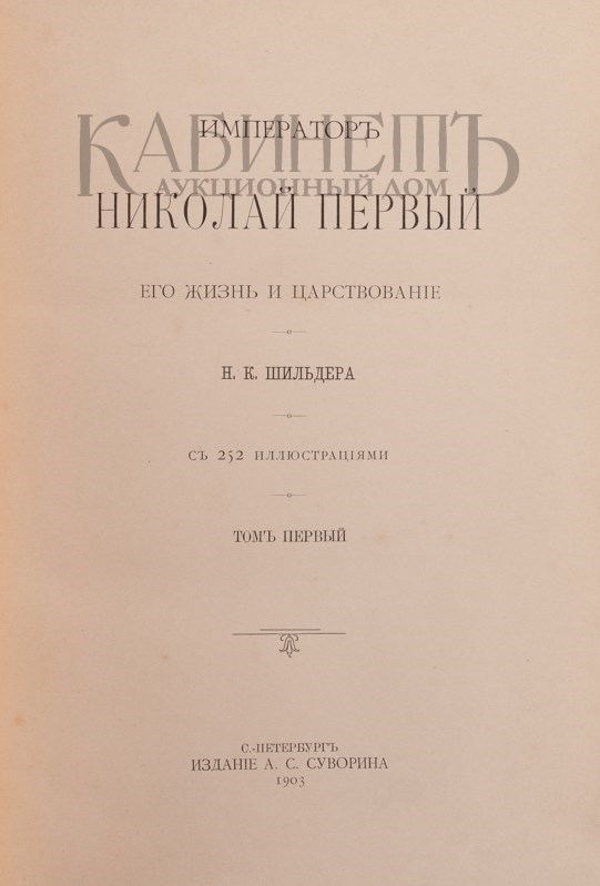 Шильдер Н.К. Император Николай Первый его жизнь и царствование. Н.К Шильдера. С 252 иллюстрациями. Том I-II. СПб., Издание А.С. Суворина, 1903.