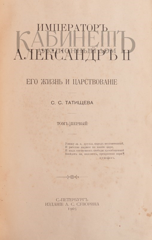 Татищев С. Император Александр II, его жизнь и царствование. В 2 томах. СПб., издание А.С. Суворина, 1903.
