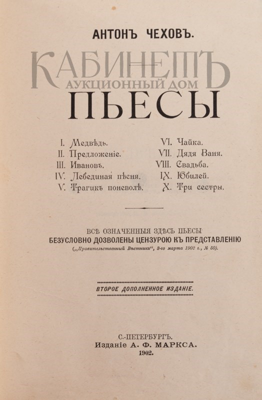 Прижизненное издание, в которое вошли все пьесы, написанные к тому моменту А.П. Чеховым.