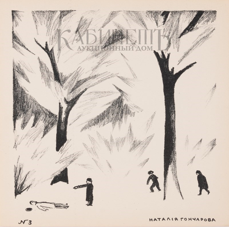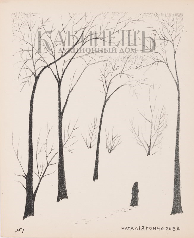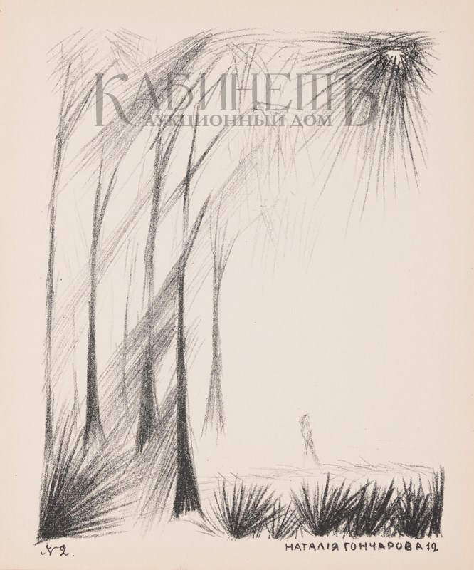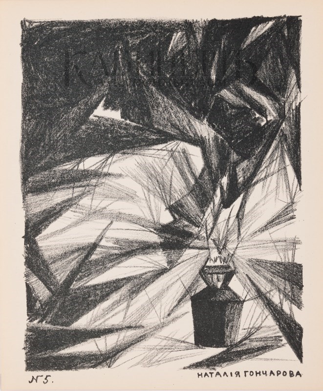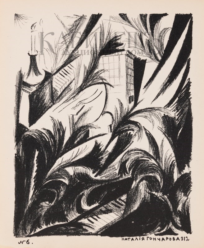 Одна из первых авангардных работ Натальи Гончаровой в технике литографии.