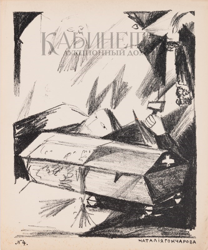 5. Илл. К стихотворению «Проводы» из цикла «Литаргия». Внизу слева: №4; справа Наталья Гончарова.