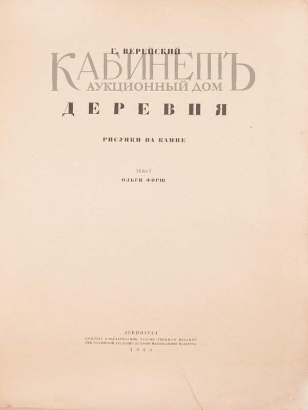 Верейский Г. Деревня. Рисунки на камне. Текст Ольги Форш. Л., Комитет популяризации художественных изданий при российской академии истории материальной культуры, 1924.
