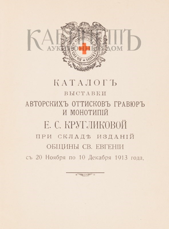 3) Каталог выставки авторских оттисков гравюр и монотипий Е.С. Кругликовой при складе изданий общины Св. Евгении с 20 ноября по 10 декабря 1913 г.
