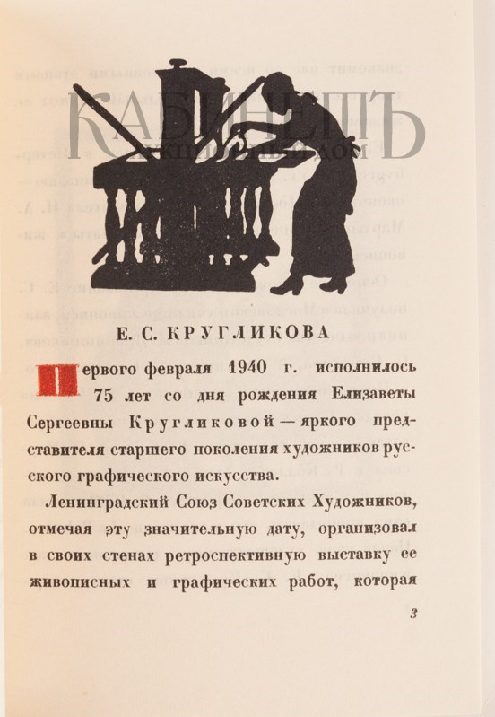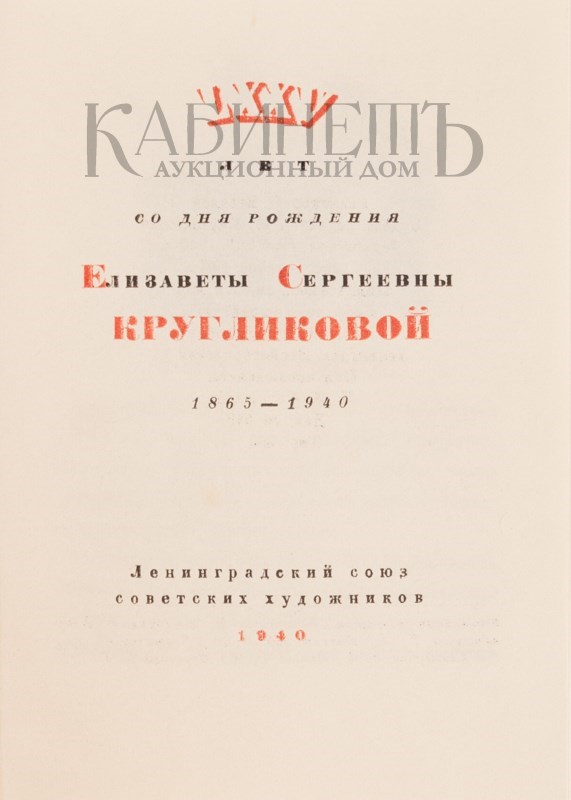2) Кругликова Е.С. LXXV лет со дня рождения Е.С. Кругликовой 1865-1940. Л., Ленинградский союз советских художников, 1940.