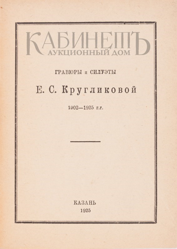 1) Гравюры и силуэты Кругликовой Е.С. 1902-1925 гг. Каталоги выставки. Казань, Издание Центрального Музея ТССР, 1925.