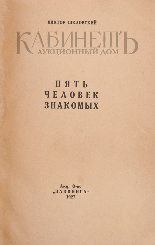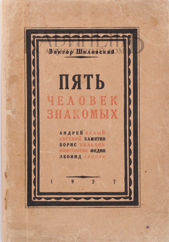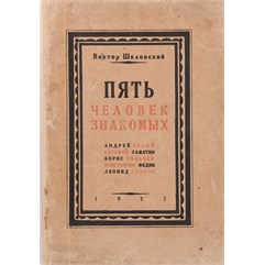 Шкловский В. Пять человек знакомых. (Андрей Белый, Евгений Замятин, Борис Пильняк, Константин Федин, Леонид Леонов). Тбилиси, Заккнига, 1927.
