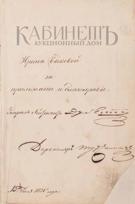 Автограф начальника штаба Корпуса жандармов и управляющего III отделением Собственной Его Императорского Величества Канцелярии, генерал-лейтенанта Л.В. Дубельта.