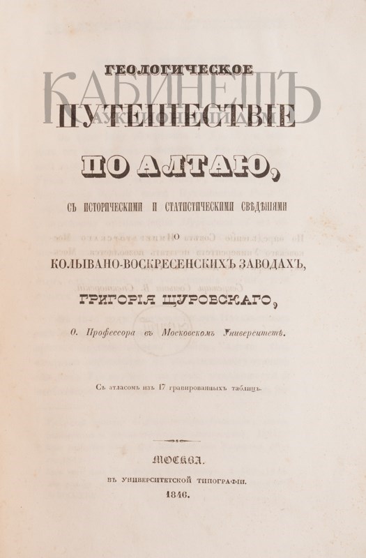 Щуровский Григорий Ефимович (1803-1884) - выдающийся геолог, доктор медицины, первый профессор геологии и минералогии Московского университета. В 1844 году на средства университета Г.Е.Щуровский организовал экспедицию на Алтай, где изучал местные рудники, исследовал горные разработки. Книга построена как подробный полевой дневник.