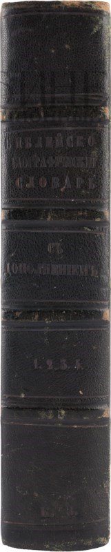 Четыре тома в одном комбинированном переплете середины XIX века. Кожаный корешок с бинтами и потухшим золотым тиснением, блинтовое тиснение по коленкоровым крышкам. Потертости, пятна на крышках переплета, загрязнение обреза, следы от влаги в нижней части блока.