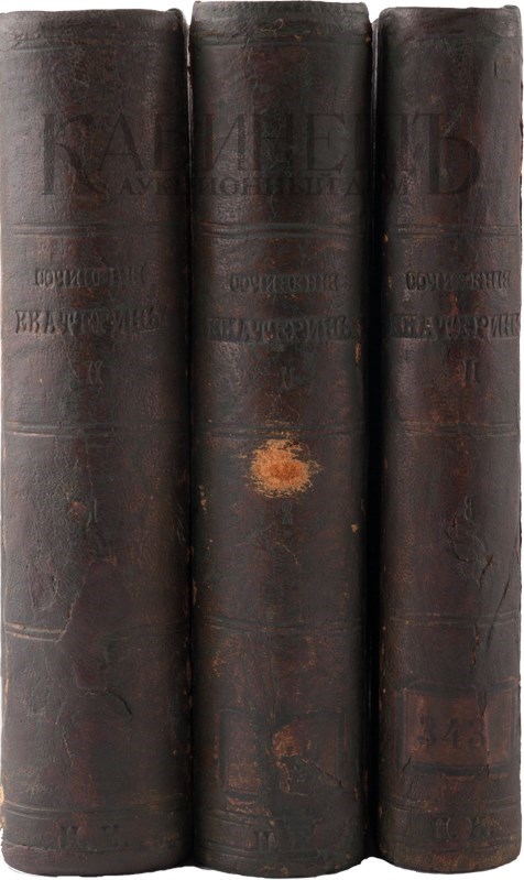 Экземпляр в старинных полукожаных переплетах , незначительные потертости, по корешкам разломы, реставрация.