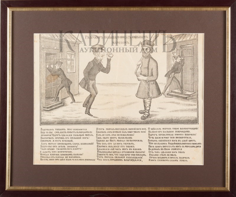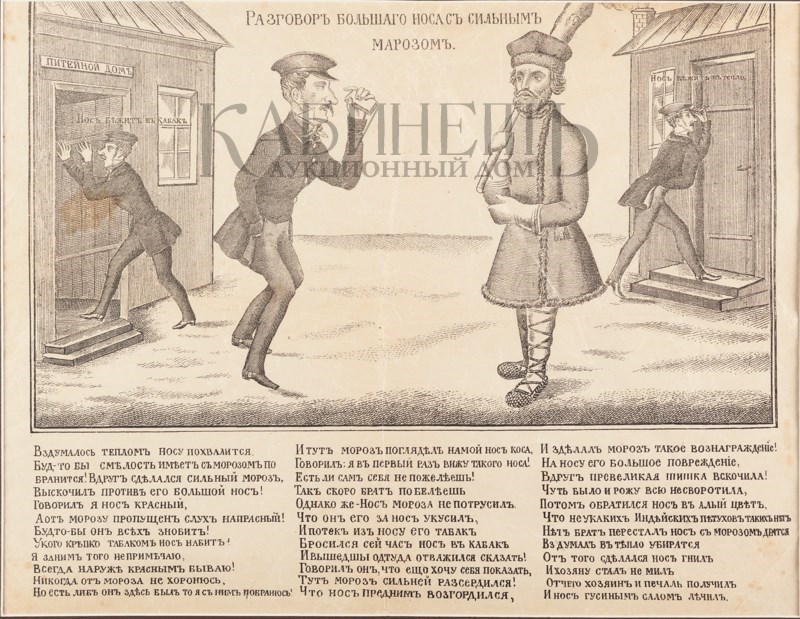 Лубочная картинка. Разговор большого носа с сильным морозом. Середина XIX века.