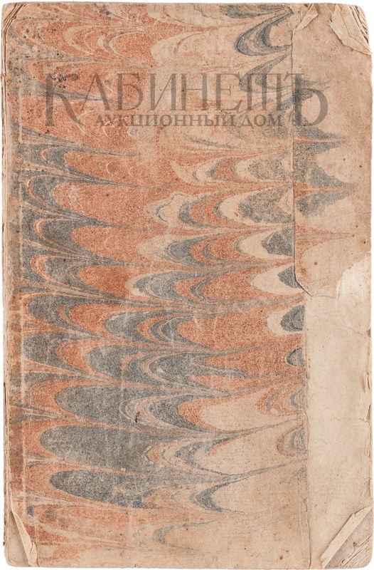 Экземпляр в издательской бумажной обложке, корешок частично утрачен, часть верхней обложки утрачена, на форзаце расположена владельческая надпись орешковыми чернилами. Мелкие надрывчики по краям обложки, потертости, загибы уголков, загрязнения.