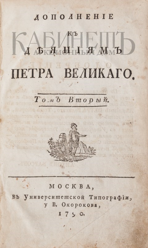 Голиков И.И. Дополнение к Деяниям Петра Великого. [В 18-ти томах] Том II. М., В Университетской Типографии, у В. Окорокова, 1790.