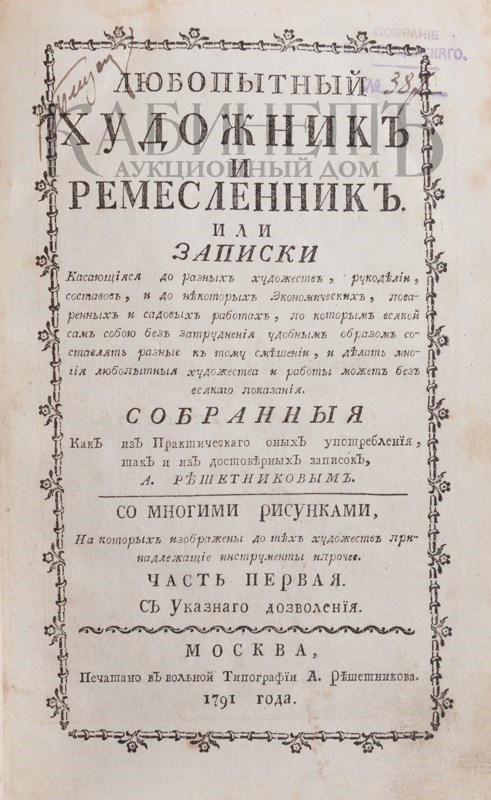 Решетников Андрей Гордеевич (Гордианович) – русский типограф и издатель. Как типограф известен с 1783 года. Его издательская деятельность ограничивается двумя десятками лет (1791—1812), в течении которых он издал, а отчасти сам и составил, 13 книг. Кроме книг, Решетников издавал еще журналы: «Дело от безделья, или приятная забава...» (М. 1792), «Прохладные Часы, или аптека, врачующая от уныния...» (М. 1793) и «Московский Собеседник, или Повествователь мыслей в вечернее время упражняющихся в своем кабинете писателей...» (1806).
