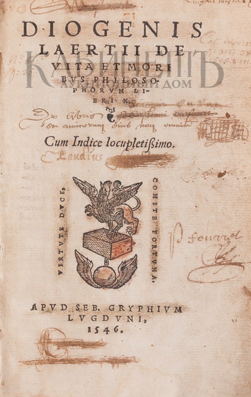 Диоген Лаэртский – позднеантичный историк философии, живший приблизительно в III веке нашей эры. Никаких сведений о нем не сохранилось, возможно, что это псевдоним. Именем Диогена Лаэртского подписан трактат, излагающий биографии и воззрения античных мыслителей, начиная с архаической эпохи до рубежа нашей эры.