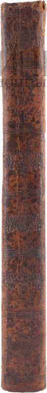 Экземпляр в кожаном переплете своего времени с тиснением по корешку и крашеными обрезами. Потертости переплета, утрата части бумаги на нахзаце. На 2-м листе штемпельный экслибрис личной библиотеки, на нахзаце наклеен литографированный экслибрис «Из книг Я.В.К.».