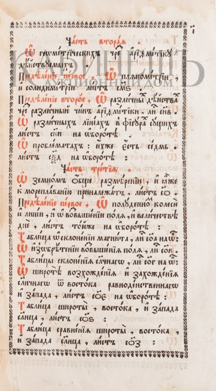 Магницкий Л. Арифметика, сиречь наука числительная. С разных диалектов на славенский язык переведенная, и во едино собрана и на две книги разделена... Москва, Печатный двор, 1703.