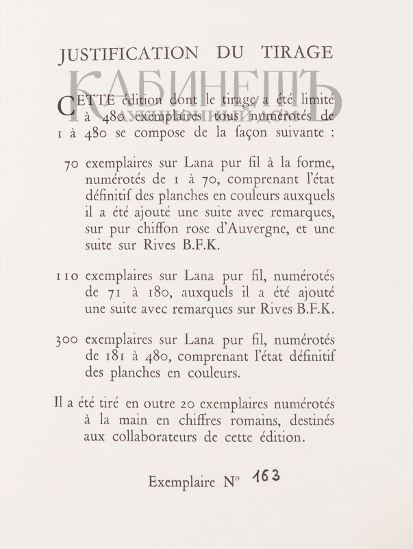 Издание на французском языке. Тираж 480 экземпляров. Экземпляр № 163.