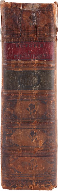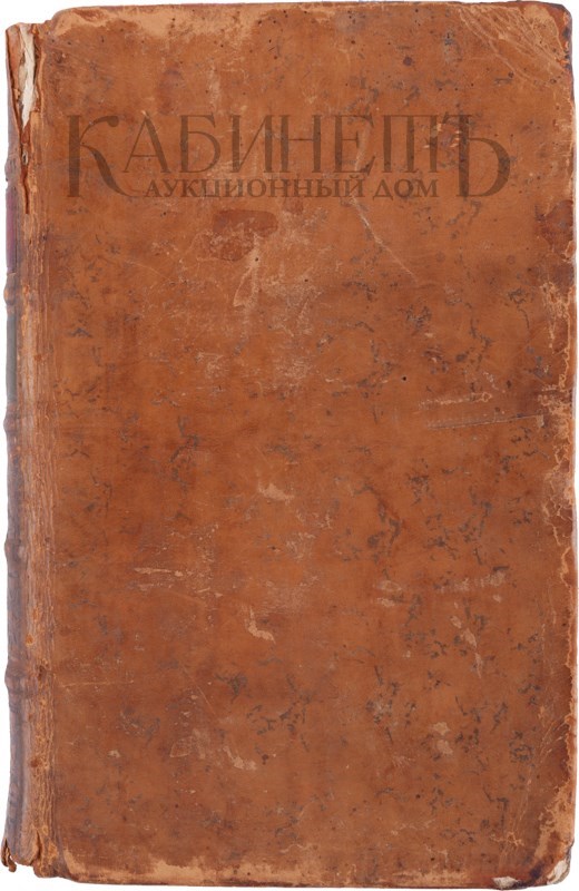 Экземпляр в кожаном переплете эпохи. Корешок с бинтами, с красной и зеленой кожаными наклейками, потухшим золотым тиснением; круговой обрез. Потертости переплета, надрывы, утраты в верхней части корешка, утрата нижнего уголка стр. 389, редкие карандашные подчеркивания в тексте. Смотри: СК XVIII. №5613.