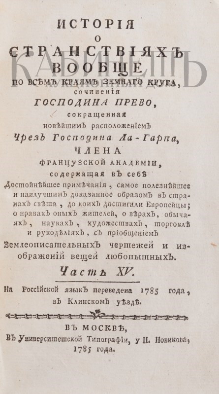 любопытных. На российской язык переведена 1785 года, в Клинском уезде [М. Веревкиным]. Часть XV (из