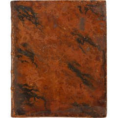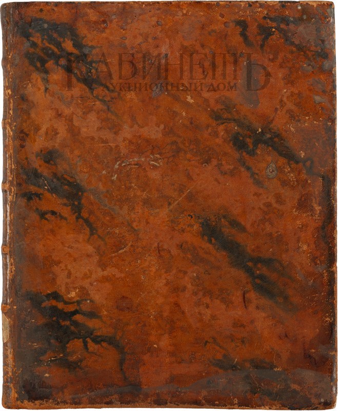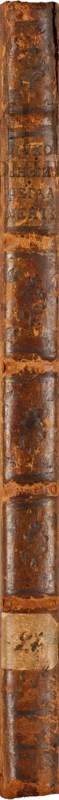 В старинном цельнокожаном переплете эпохи. Тонированный обрез. Форзацы из бумаги под «павлинье перо». Потертости, надрыв кожи на корешке. Экслибрис на форзаце. Букинистические пометы на свободном листе нахзаца. Бледные разводы от воды по полям (кроме нижнего). Смотри: СК XVIII в. №2069; Сопиков. №9701.