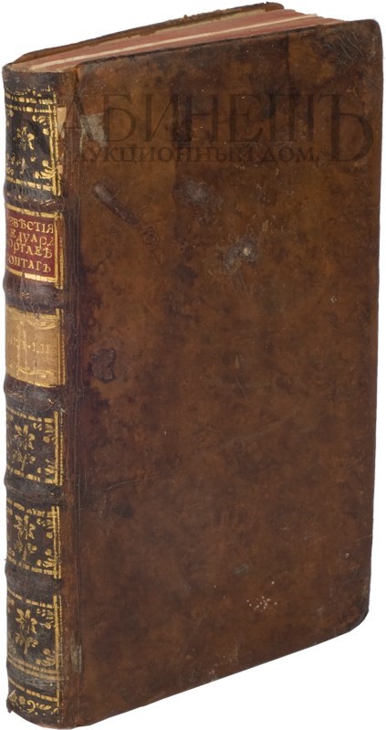 Экземпляр в старинном цельнокожаном переплете с золотым тиснением по корешку, незначительные потертости перелета, мелкие утраты в низу корешка, владельческие пометки карандашом.