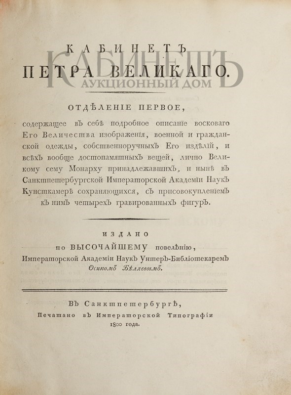 Экземпляр в современном цельнокожаном переплете с золотым тиснением по крышкам и корешку. Золототисненная подвертка, орнаментированные форзацы. Незначительные загрязнения титула отделения II, редкие загрязнения страниц, редкие разводы от воды.