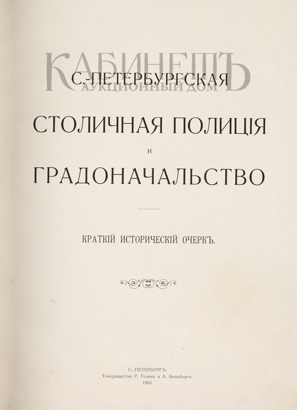 Санкт-Петербургская столичная полиция и градоначальство. Краткий исторический очерк. Текст – Надворного Советника И.П. Высоцкого. СПб., Товарищество Р. Голике и А. Вильборг, 1903.