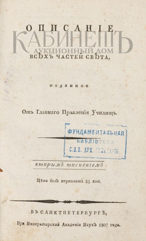 Гаспари А.К. Описание всех частей света, изданное от Главного правления училищ. Вторым тиснением. СПб., при Императорской Академии наук, 1807.