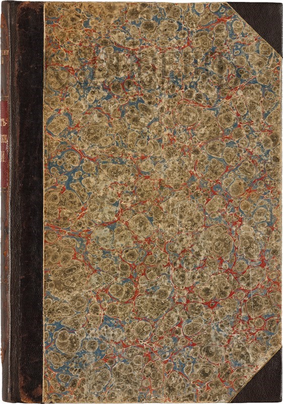 Экземпляр в старинном полукожаном переплете. Сохранена издательская шрифтовая обложка. Крапленый обрез. Корешок реставрирован (дублирован), уголки новые. Владельческие и библиотечные(?) дореволюционные штампы. Пометы карандашом. Утрата последней страницы (текст занимал половину с. 239).