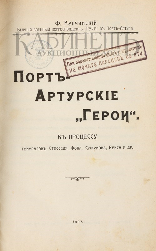 Купчинский Ф. Порт-артурские «герои». К процессу генералов Стесселя, Фока, Смирнова, Рейса и др. Москва, тип. А.П. Поплавского, 1907.