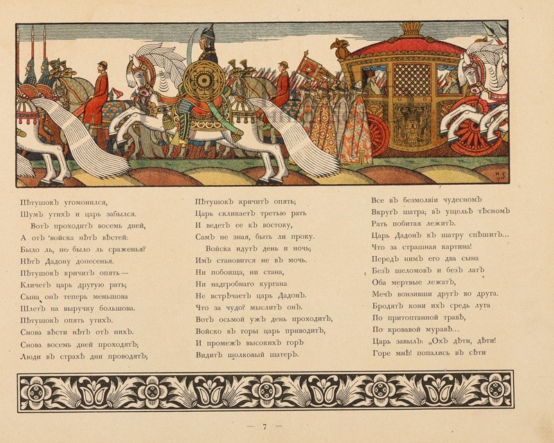 Пушкин А.С. Сказка о золотом петушке. Рисунки И.А. Билибина. СПб., издание Экспедиции Заготовления Государственных Бумаг, [1907].