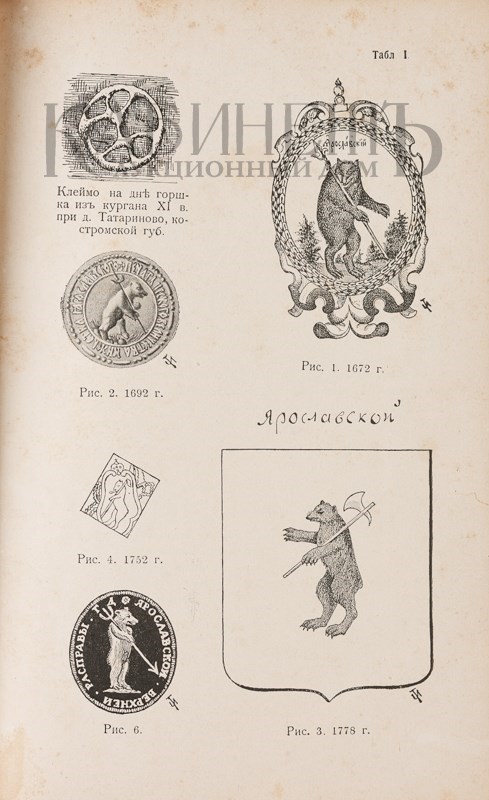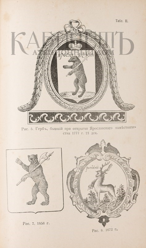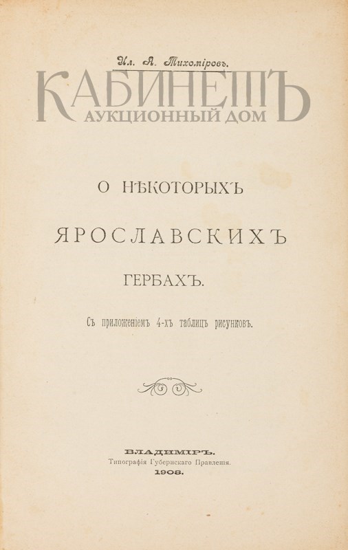 Тихомиров И.А. О некоторых ярославских гербах. С приложением 4-х таблиц рисунков. Владимир, тип. Губернского правления, 1908.