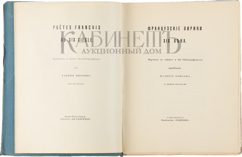 Французские лирики XIX века. Перевод в стихах и биобиблиографические примечания Валерия Брюсова. СПб., Пантеон, [1909].
