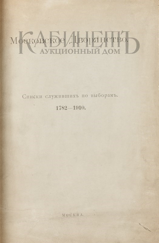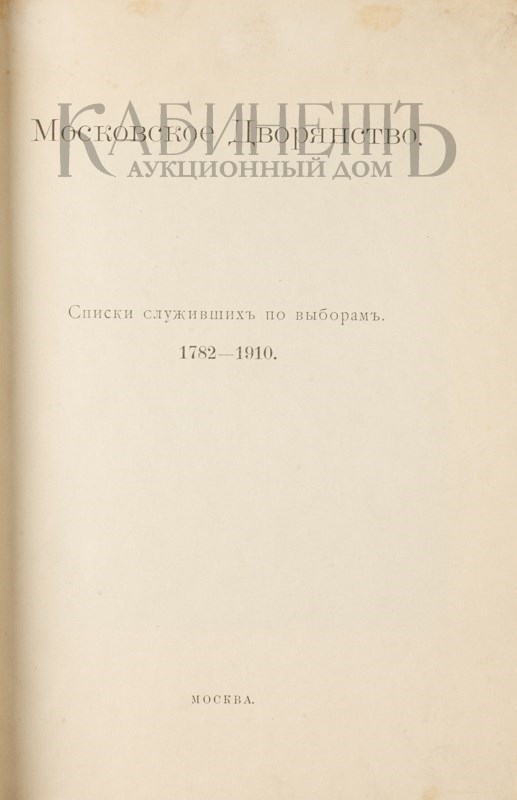 Московское дворянство. Списки служивших по выборам. 1782–1910. М., тип. Л.В. Пожидаевой, 1910.