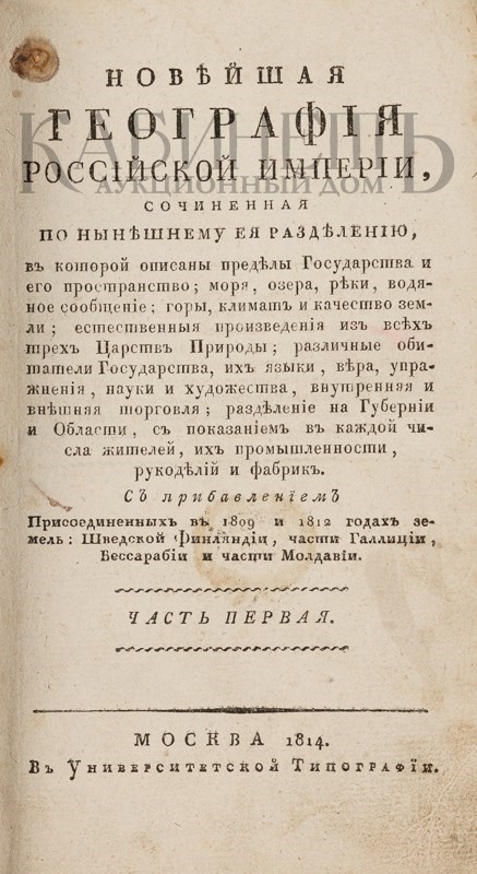 Архив аукциона №20(66) Лот 26 Зябловский Е.Ф. Новейшая география