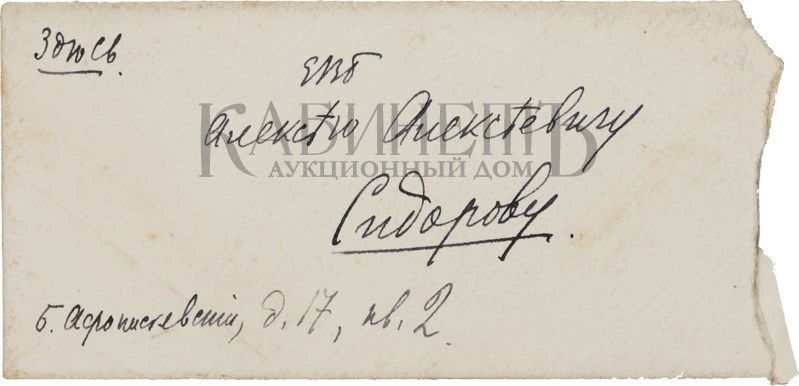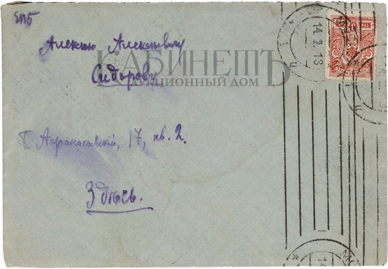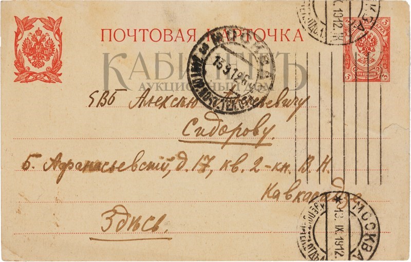Подборка из 6 писем к А. Сидорову: 3 открытых письма, 2 письма и визитная карточка с приглашением от Вадима Шершеневича; 1 письмо А. Чеботаревской. 1912 г.