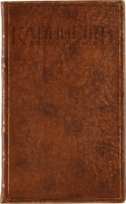 Тиснение золотом по крышкам и корешку. Владельческая надпись на с. 3 (орешковые чернила). Незначительные «лисьи» пятна, бледные разводы от воды.