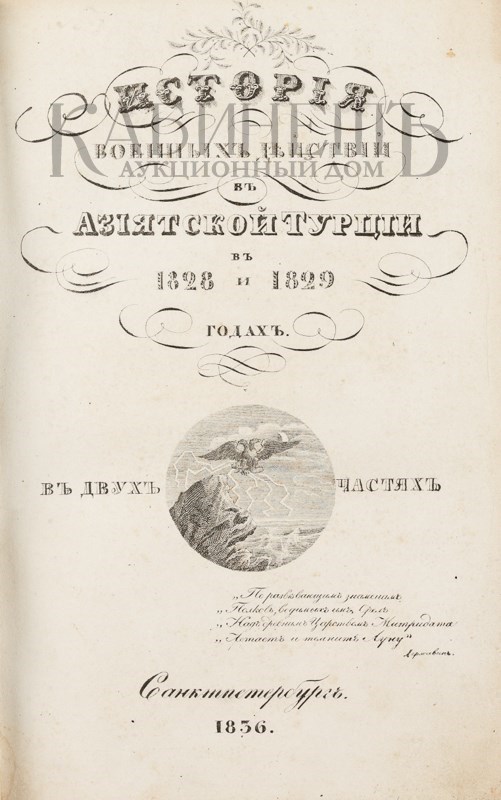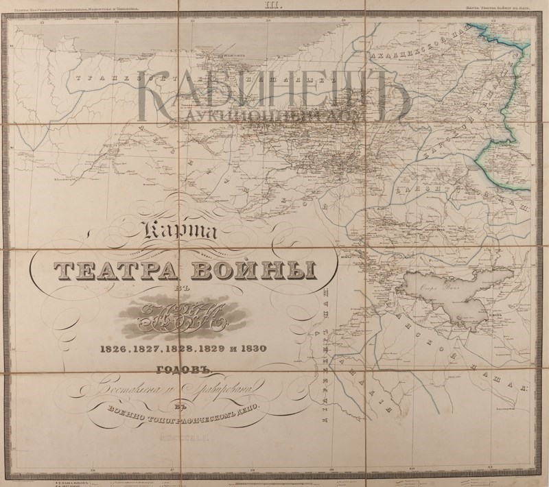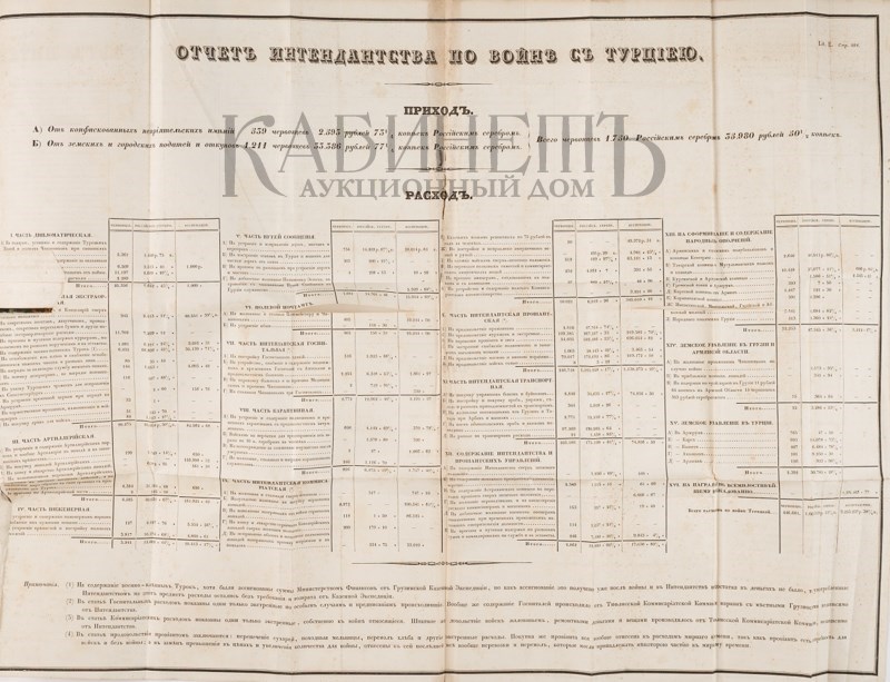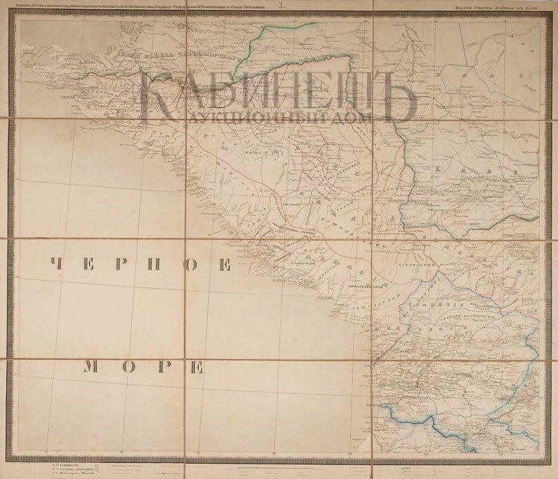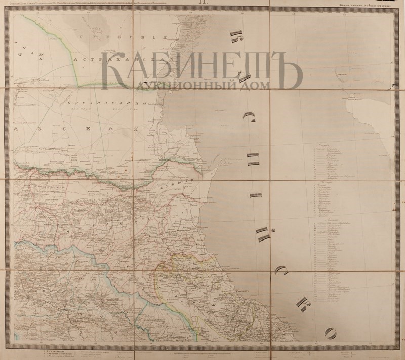 Экземпляр в старинных полукожаных переплетах с остатками золотого тиснения по корешкам, потертости переплетов. Том II подрезан. У тома I оторвана верхняя крышка. К комплекту прилагается карта состоящая из 4-х листов, в издательском футляре.