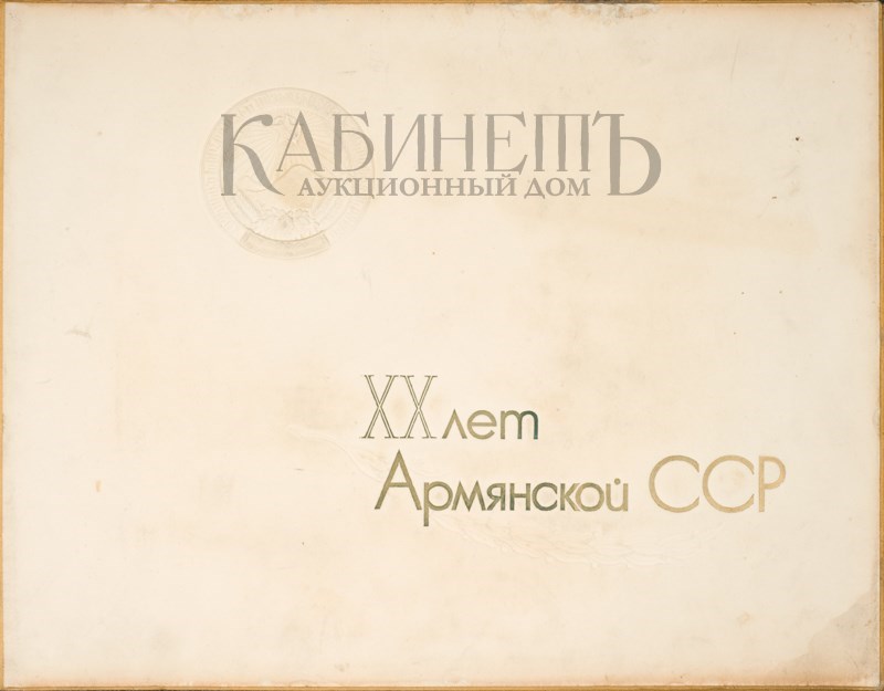 Экземпляр в подносном переплете из лакированного дерева, с бронзовыми накладками на верхней крышке (название и чеканный медальон с гербом Армянской ССР, табличка для имени владельца - в нашем экземпляре пустая), форзацы обтянуты шелком. Утрата 1 фото на с.[2]. Хорошая сохранность экземпляра.