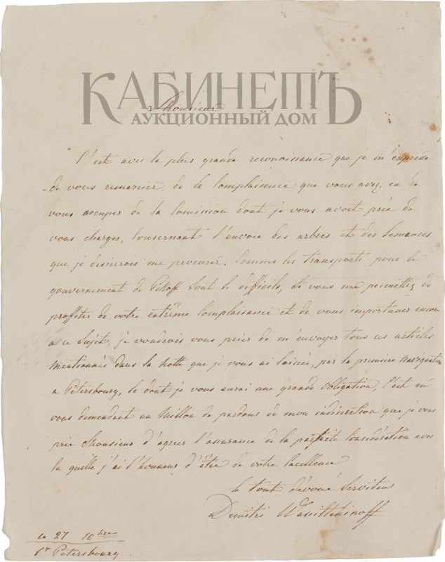 Васильчиков Дмитрий Васильевич (1778–1859) – генерал от кавалерии (1858), егермейстер (1832), председатель Совета заведений общественного призрения. Участник Отечественной войны 1812 г. и Заграничного похода русской армии. В 1822 г. уволен в отставку с мундиром и пенсией. В 1830 г. поступил на придворную службу с чином тайного советника и назначен обер-егермейстером двора ЕИВ. Состоял в комитете по постройке Исаакиевского собора в Петербурге. 30 мая 1858 г. по случаю окончания строительства и освещения собора был награждён переводом в армию с зачислением в Ахтырский гусарский полк и с производством в генералы от кавалерии.