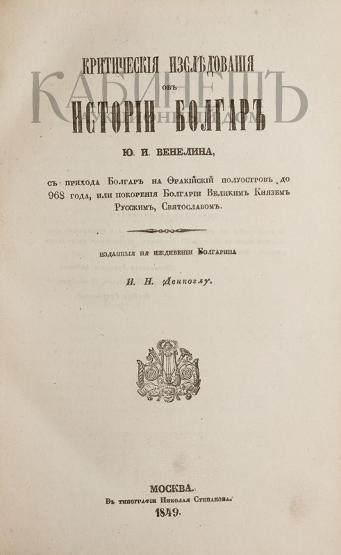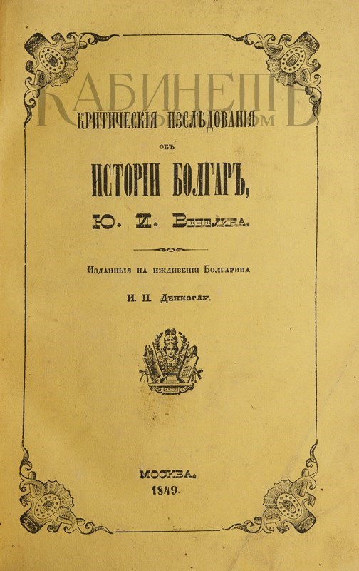 Венелин Юрий Иванович (1802 – 1839) – российский и болгарский историк и публицист, один из создателей славистики, деятель славянского национального возрождения.